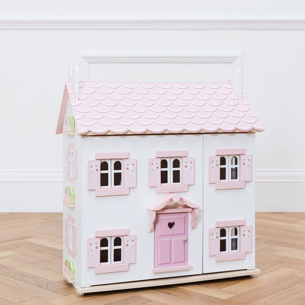 Domček Sofia je skutočnou klasikou! Luxusný poschodový domček pre bábiky má nadčasový dizajn, snívajú o ňom všetky deti. Hračka s nádychom nostalgie je ručne maľovaná kombináciou pastelovo ružovej a bielej farby. Okná a okenice je možné otvárať a zatvárať, nájdete na nich aj kvetinový motív. Domček má mnoho krásnych detailov – vrúbkovaná strecha sa trblieta, interiér má v každej izbe inú dekoráciu. Ako je krásny, tak je udržateľný – je to hračka bez obsahu plastu.