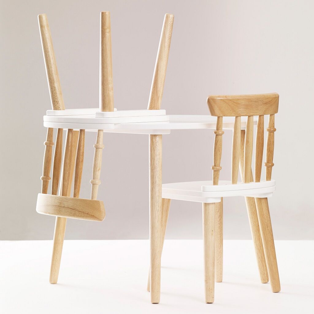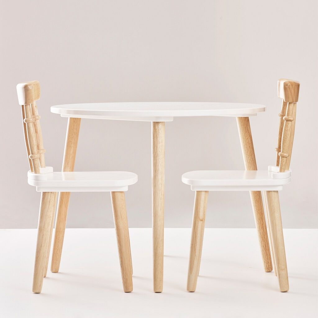Očarujúci set detského stola so stoličkami sa bude vynímať v každej herni či detskej izbe. Perfektné miesto na tvorenie, čítanie, jedenie alebo iné zábavné aktivity. Tento multifunkčný set jednoducho musíte mať. Nadčasový dizajn a pevné kaučukové drevo, stolček a stoličky vám vydržia naozaj dlho. Farebná kombinácia bielej farby a prírodného dreva, skutočne krásny detský nábytok, ktorý si môžete odovzdávať z generácie na generáciu.